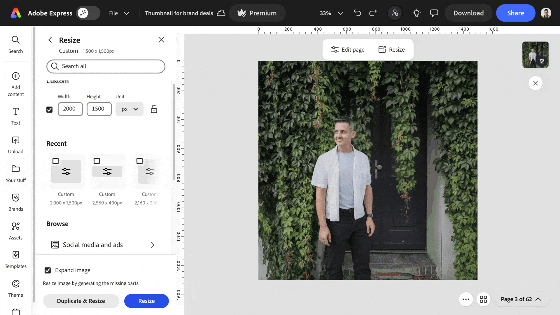 When you resize to a new aspect ratio, Express can use generative AI to expand your backgrounds naturally, no awkward cropping required.