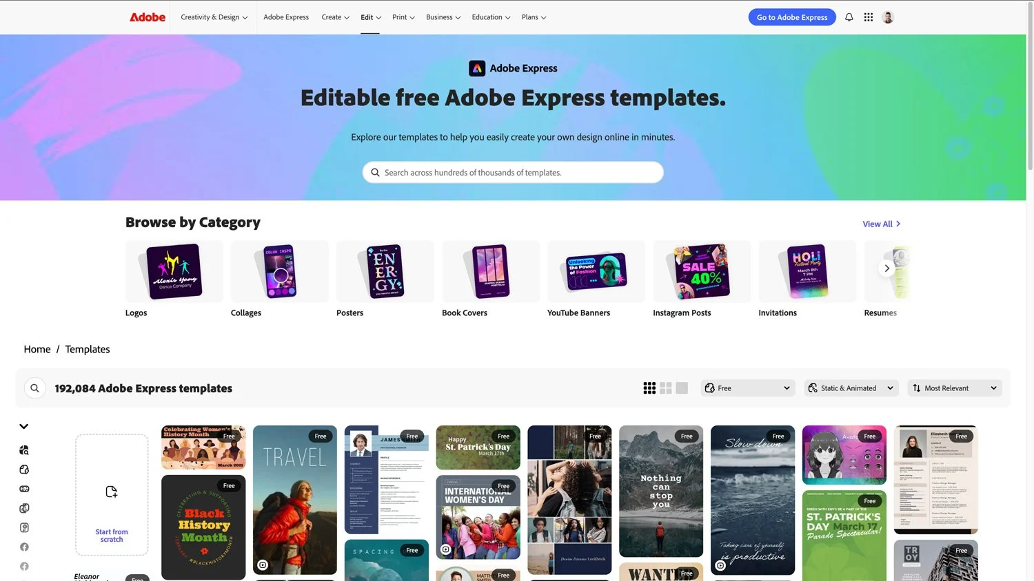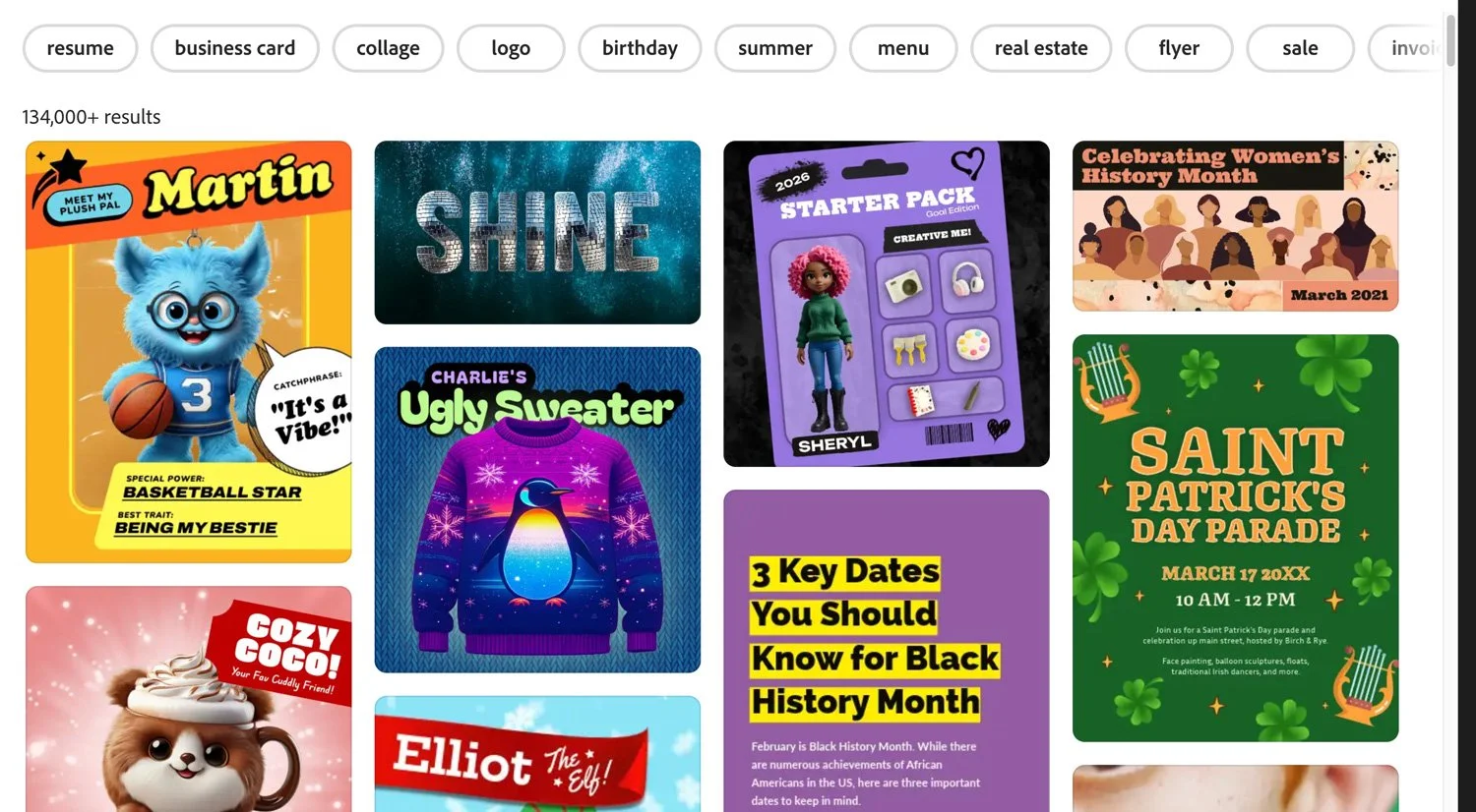 On the other hand, Adobe Express' template library is smaller, but the experience of browsing feels different.