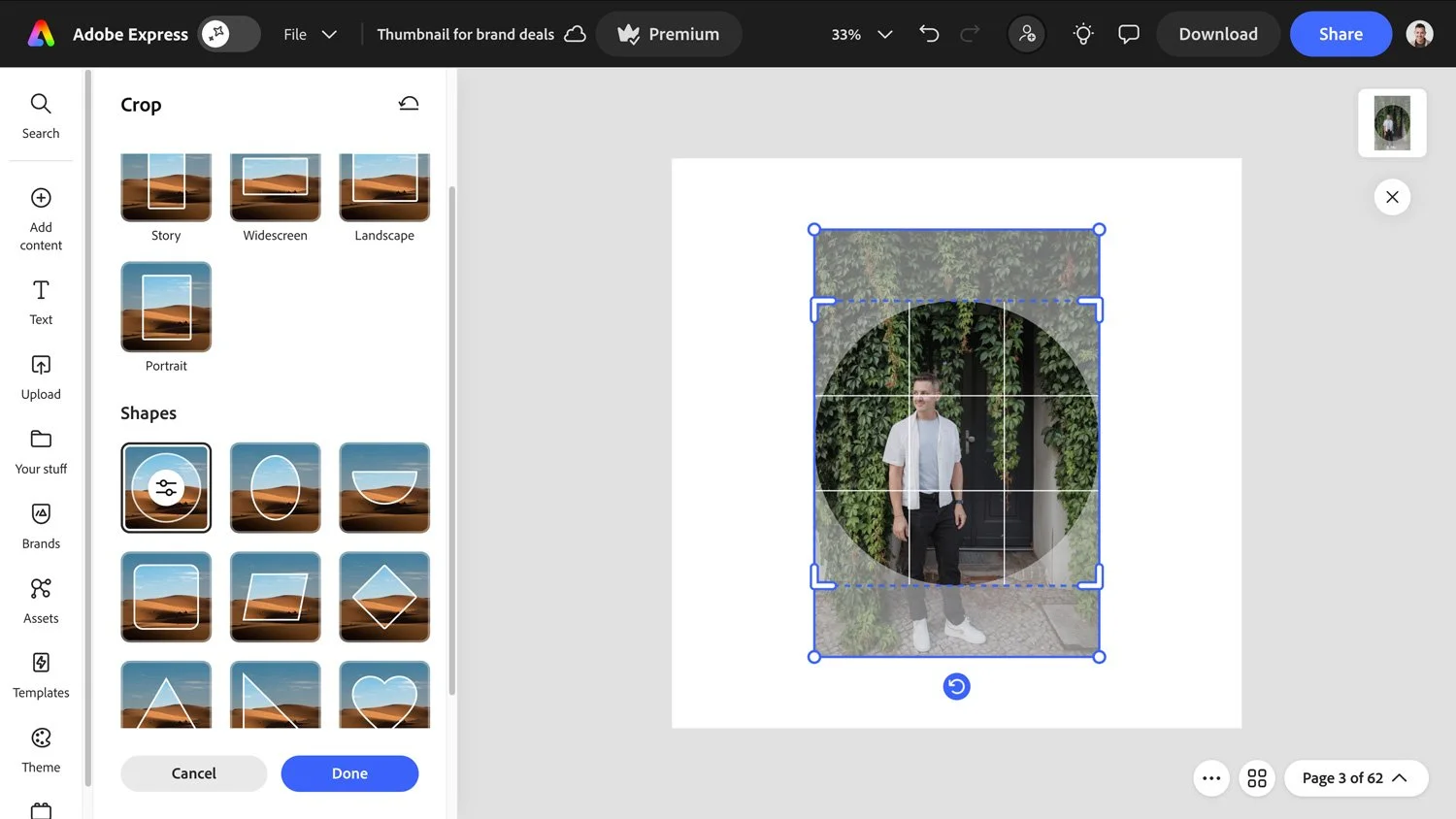Canva has "frames" that let you place images into pre-defined shapes. Adobe Express takes a different approach with the ability to crop any asset to any shape. The design elements in Express are more sophisticated overall, and I find this approach more flexible for creative work.