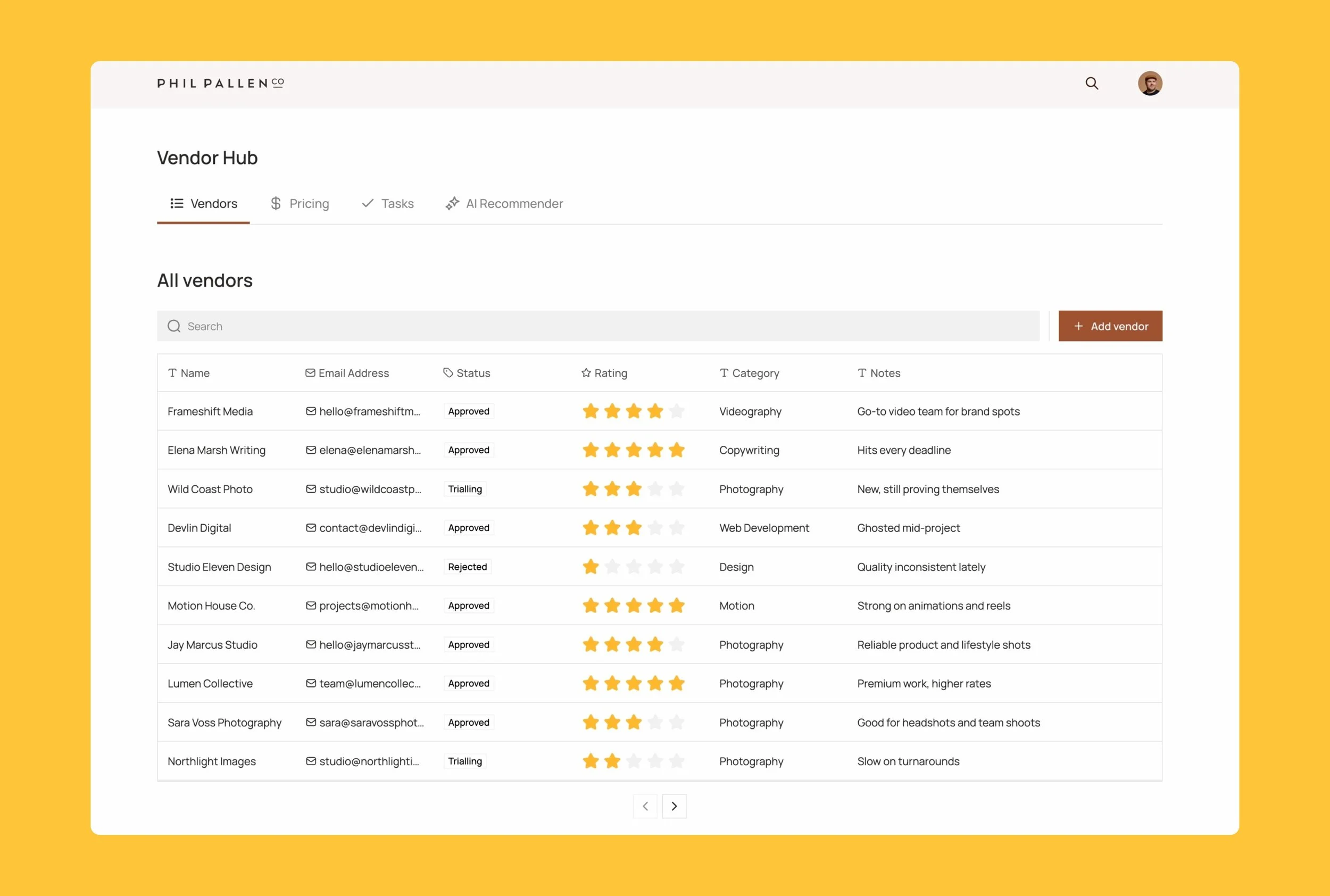 As soon as you work with more than a few contractors, things start to scatter. Contact details live in spreadsheets. Pricing sits in old emails. Notes exist only in someone’s head. Decisions happen in Slack and disappear the next day.